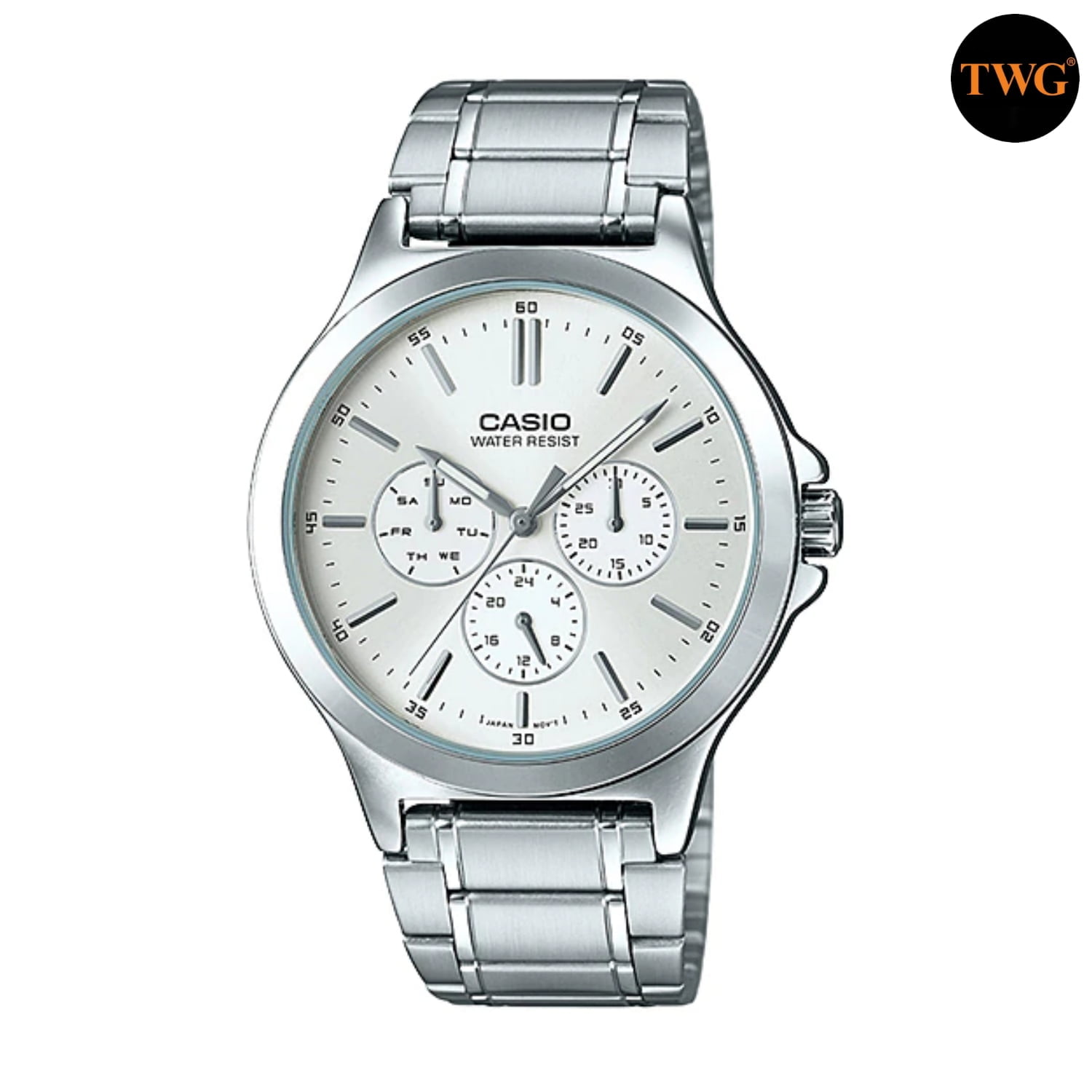 Analog: 3 hands (hour, minute, second), 3 dials (date, day, 24-hour) - Accuracy: ±20 seconds per month