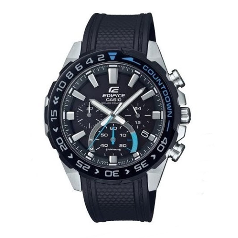 The EFS-S550 was developed under the guidance of the Scuderia Toro Rosso pit crew. Solar powered operation, highly scratch resistant sapphire crystals, and 100-meter water resistance all combine to make these the ultimate in pit crew chronograph reliability. A countdown bezel also supports crew timekeeping management. It enables countdown of the time to the next scheduled event or the time remaining until a task being performed needs to be completed.