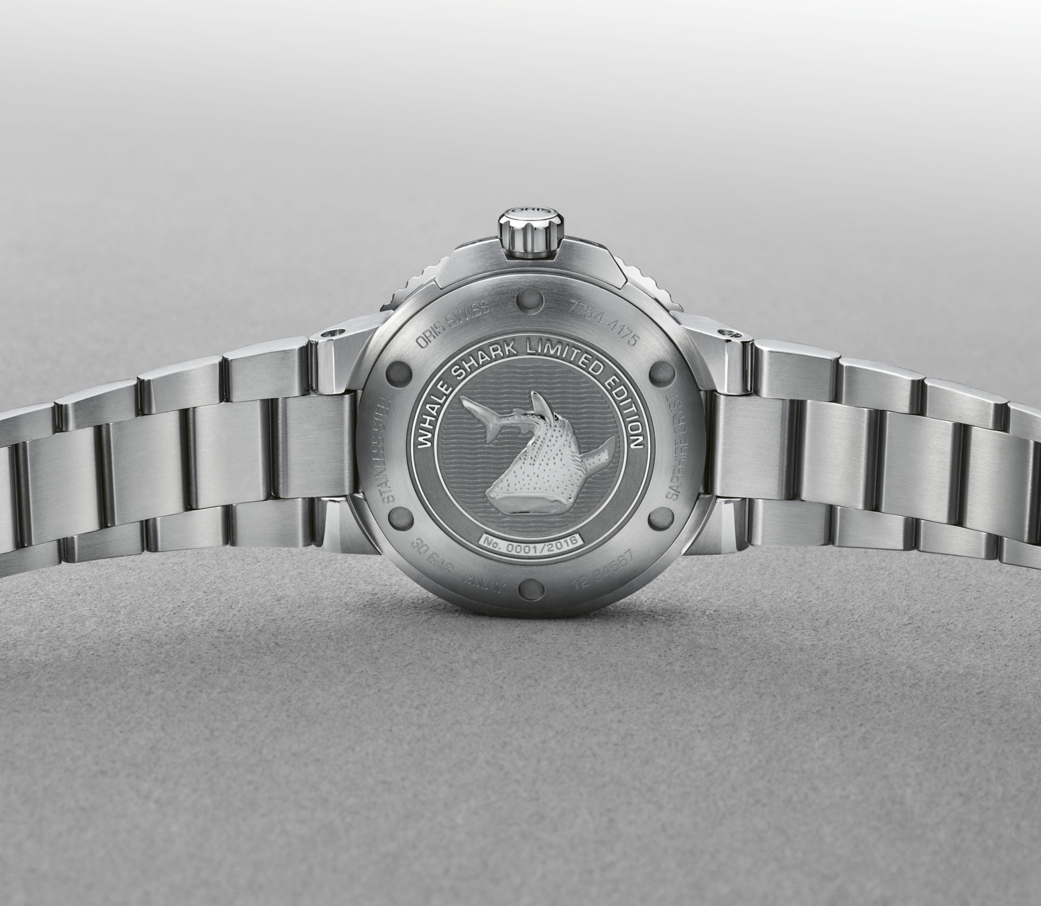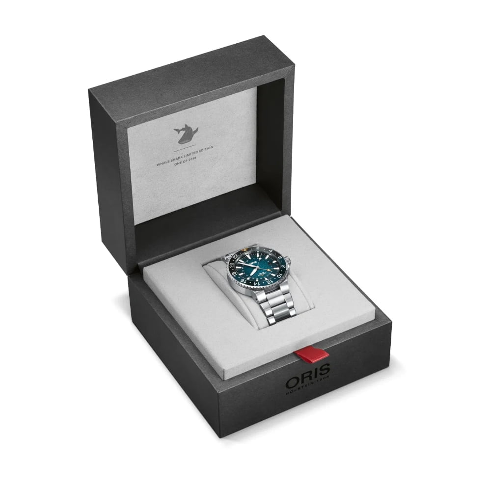 The Oris Whale Shark Limited Edition is based on the Oris Aquis GMT diver’s watch and is limited to 2,016 pieces to mark the year of the IUCN’s landmark whale shark announcement.