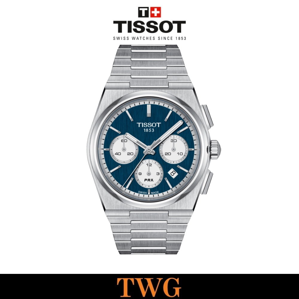 Created for those with an eye for design and packed with twenty-first century features in a Tissot case shape from 1978, the PRX Chrono is a must-have on every watch fan’s wish list. This 42mm satin-finished steel watch follows the PRX’s sleek, angular form, adding to the laid-back 1970s sports watch style with a blue dial with white counters. The PRX Chrono is powered by the Valjoux A05.H31 calibre, which provides the design with the classic 3, 6 and 9 chronograph dial layout and an extended 60-hour power reserve.